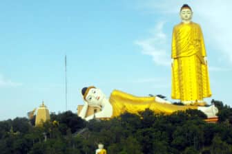 Après un bon petit déjeuner à l’hôtel, départ par la route pour Moulmein (253km/5h), connu également sous le nom de Mawlamyine. Départ pour une découverte approfondie de la région Môn. Avant d’arriver à Moulmein, 30mn plus au sud de la ville, visite du Grand Boudddha couché, appelé Win Sein, long de 180 mètres et haut de 30 mètres. À l’intérieur de ce Bouddha titanesque se succède, sur 3 étages, un grand nombre de pièces, remplies de peinture et de sculpture représentant la vie de Bouddha. Vous déambulerez dans les ruelles de la ville où vous ressentirez, par l’architecture, l’époque coloniale britannique. Avant le coucher du soleil, vous vous rendrez à la Pagode Kyaikthanlan, situé au sommet de la colline qui domine la ville. Du sommet, un magnifique panorama sur la région et le fleuve Salween. Nuit à l’hôtel à Moulmein.