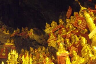 Au pied du mont, se trouve le jardin de Lumbini qui détient plus de 1100 statues de Bouddhas. Si le lieu n’a rien d’extraordinaire, ces quelques milliers de statues créent une atmosphère impressionnante à immortaliser. Vous vous rendez au versant ouest du mont Zwekabin où se trouve un escalier qui mène au sommet. Grimpez 30mn pour obtenir une vue à couper le souffle sur les rizières, les villages et les paysages karstiques. Après avoir redescendu les marches, direction la grotte de Saddar (grotte très profonde). Et c’est muni de votre lampe torche que vous la traverserez en admirant les statuettes de Bouddhas disposées tout le long de la paroi. À la sortie la magie opère ; vous êtes accueillis par un jeu de lumière naturel et un magnifique lac au milieu des rizières !