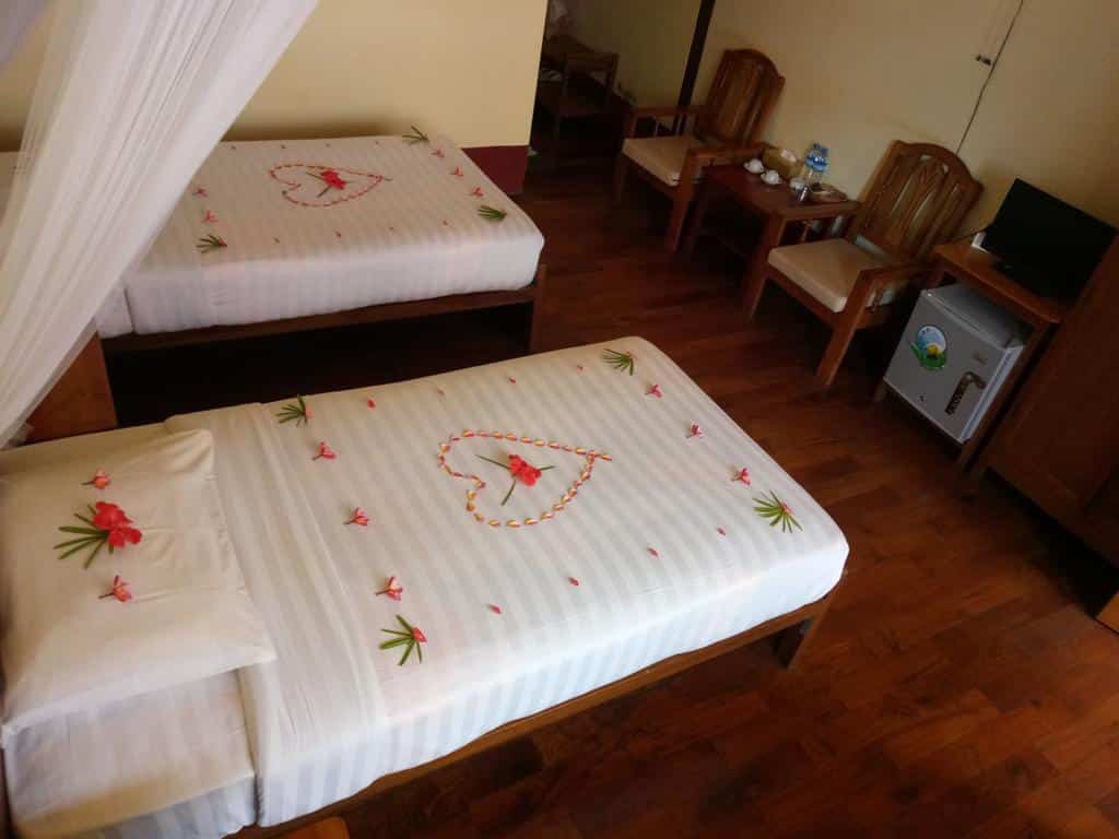 L’hôtel est bien placé, au pied des grottes de Pindaya. Les beaux jardins offrent un cadre magnifique. L’hôtel est tenu par une famille très accueillante et généreuse. Les chambres sont grandes et simples mais confortables et propres. Elles disposent d’une salle de bain et d’une petite terrasse très agréable avec chaise en bambou.Un petit-déjeuner buffet est servi chaque matin dans l’hébergement et l’hôtel dispose d’un restaurant où les repas sont délicieux et copieux.